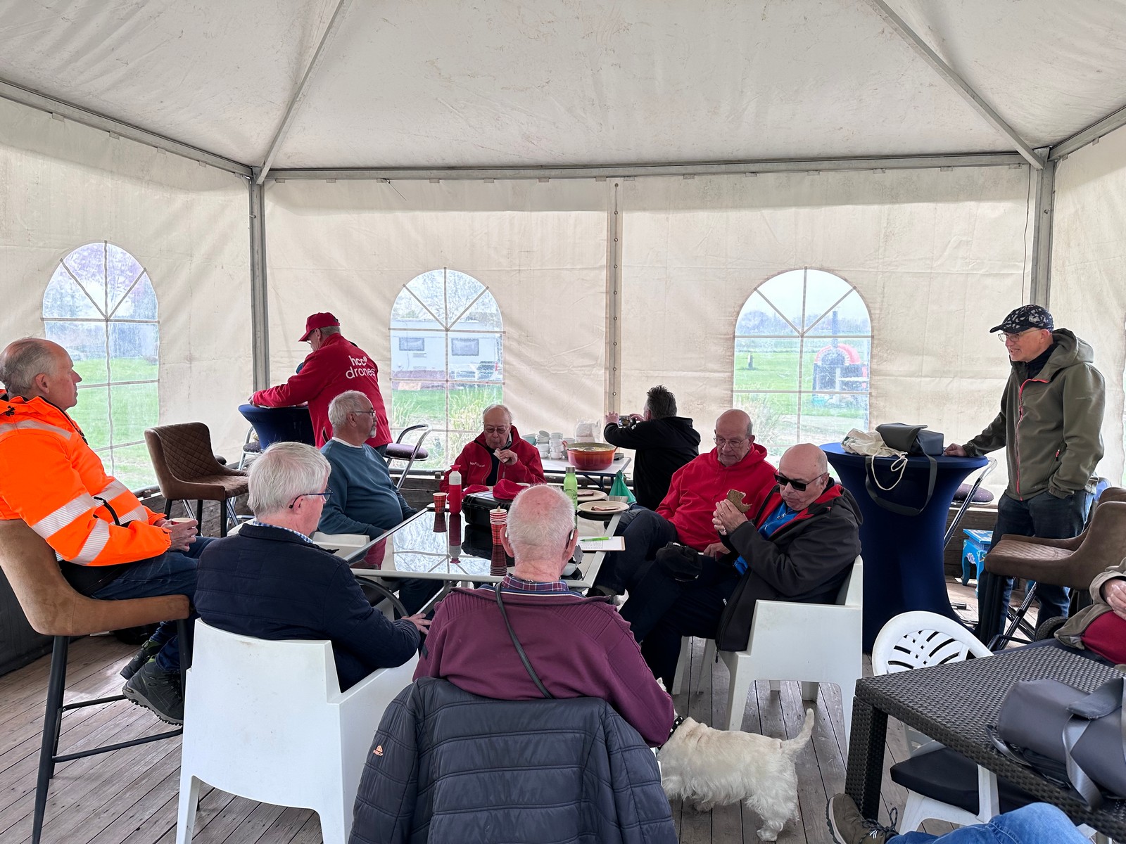 Organisator Eddy was al vroeg aanwezig en kwam vóór tien uur eerst even langs voor een kop koffie op de camping, waar ik zelf met de caravan stond. Rond kwart over tien zijn we samen naar de ingang van de camping gelopen, waar de partytent stond opgesteld.