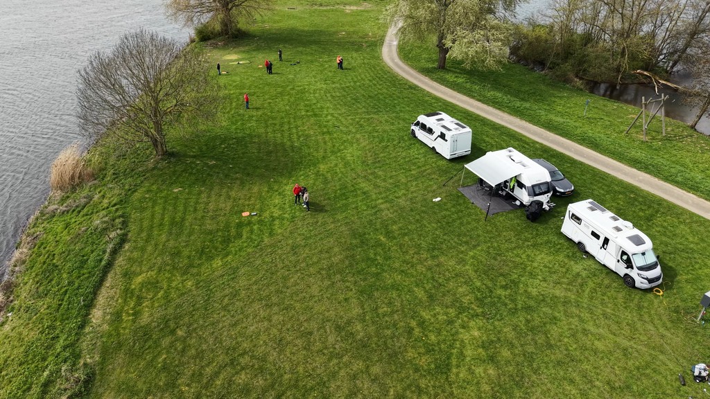 Op zaterdag 11 april 2026 vond de dronebijeenkomst plaats bij Camping ’t Megensche Veerhuis in Appeltern. Dankzij de mooie ligging aan de Maas, tegenover Megen, bood deze locatie uitstekende mogelijkheden voor zowel beginnende als ervaren dronevliegers.
