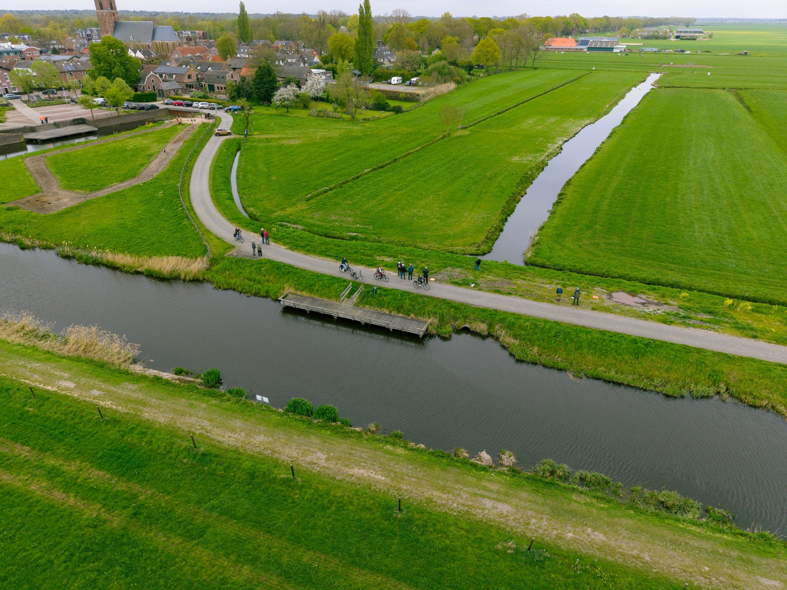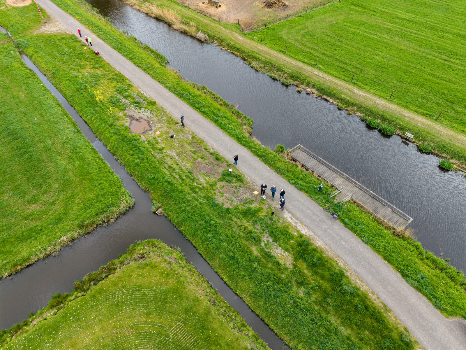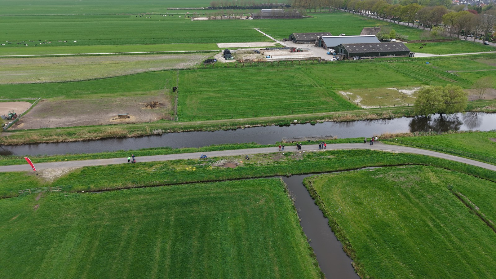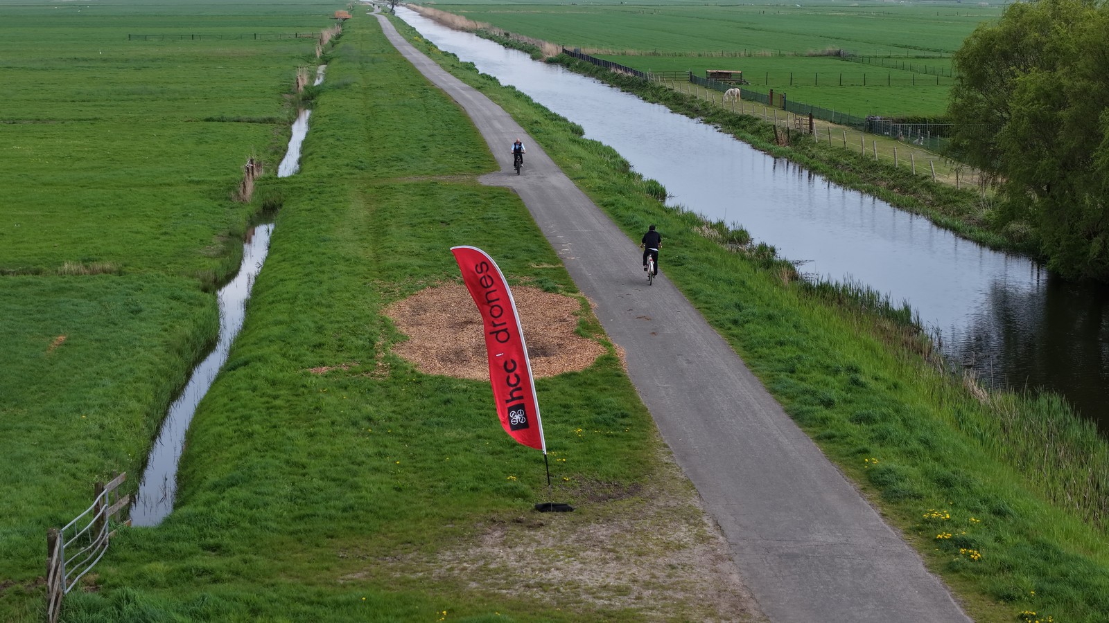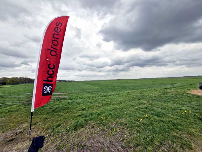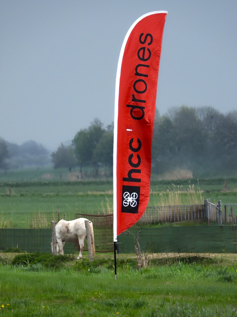 Aan de ene kant was de grens het weiland met paarden en aan de andere kant werd de HCC!drones vlag langs het fietspad in de grond verankerd als uiterste vlieggrens.